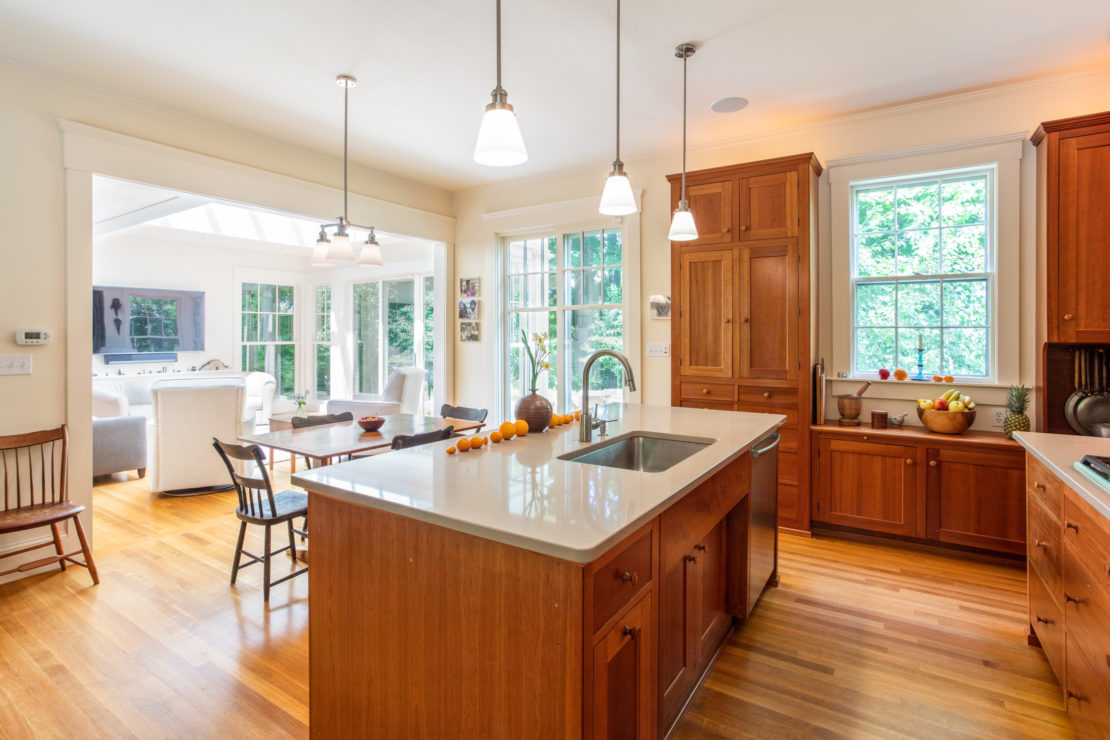 A Needham family grows its home to accommodate and enjoy three generations, while connecting interior space with exterior views. Updating the footprint of the house to connect the main farmhouse to the barn creates space for large families to gather in a stunning open-concept great room boasting natural sunlight and views of the beautiful landscape.